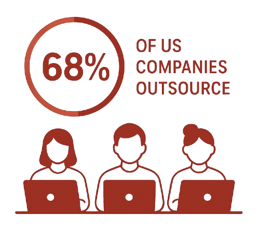 nearly 68% of US companies outsource routine administrative and marketing tasks